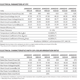پنل خورشیدی JAM66D45 LB 620W - N TYPE BAIFACIAL برندJA SOLAR