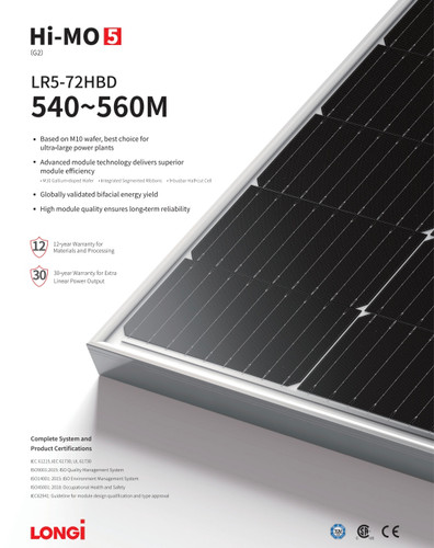 پنل خورشیدی ۵۵۰ وات مونو کریستال بای فشیال برند لانگیLONGI